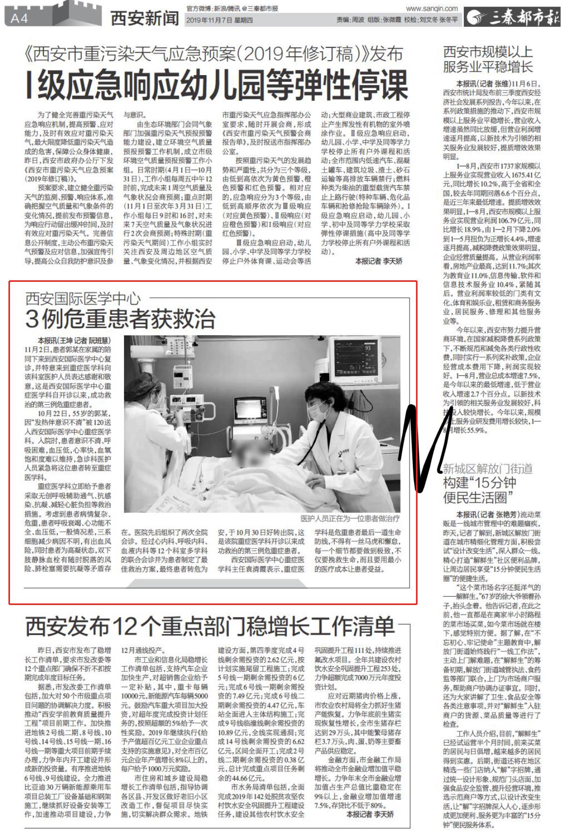 三秦都市報報道—西安國際醫(yī)學(xué)中心3例危重患者獲救治。點擊閱讀。