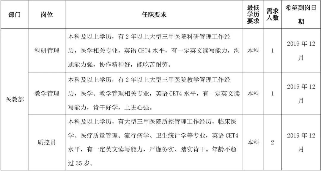 擁護(hù)黨的路線、方針、政策;遵守國(guó)家法律、法規(guī);熱愛本職工作,責(zé)任心強(qiáng),有良好的職業(yè)道德,認(rèn)同國(guó)際醫(yī)學(xué)價(jià)值理念,愿意投身醫(yī)療事業(yè);所學(xué)專業(yè)必須與應(yīng)聘崗位要求相符或必須具有相關(guān)從業(yè)經(jīng)歷。