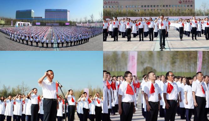 在新中國(guó)成立70周年之際,西安國(guó)際醫(yī)學(xué)中心醫(yī)院開(kāi)診啦!9月25日上午,西安國(guó)際醫(yī)學(xué)中心醫(yī)院舉行了開(kāi)診儀式?!爸粸橛幸婊颊咧拢〗^不為金錢(qián)泯滅良心!”在尹強(qiáng)院長(zhǎng)的領(lǐng)誓下,全體員工舉起右拳,用鏗鏘有力的誓言表達(dá)了自己以精準(zhǔn)診療,提高西安人民健康福祉的信念。