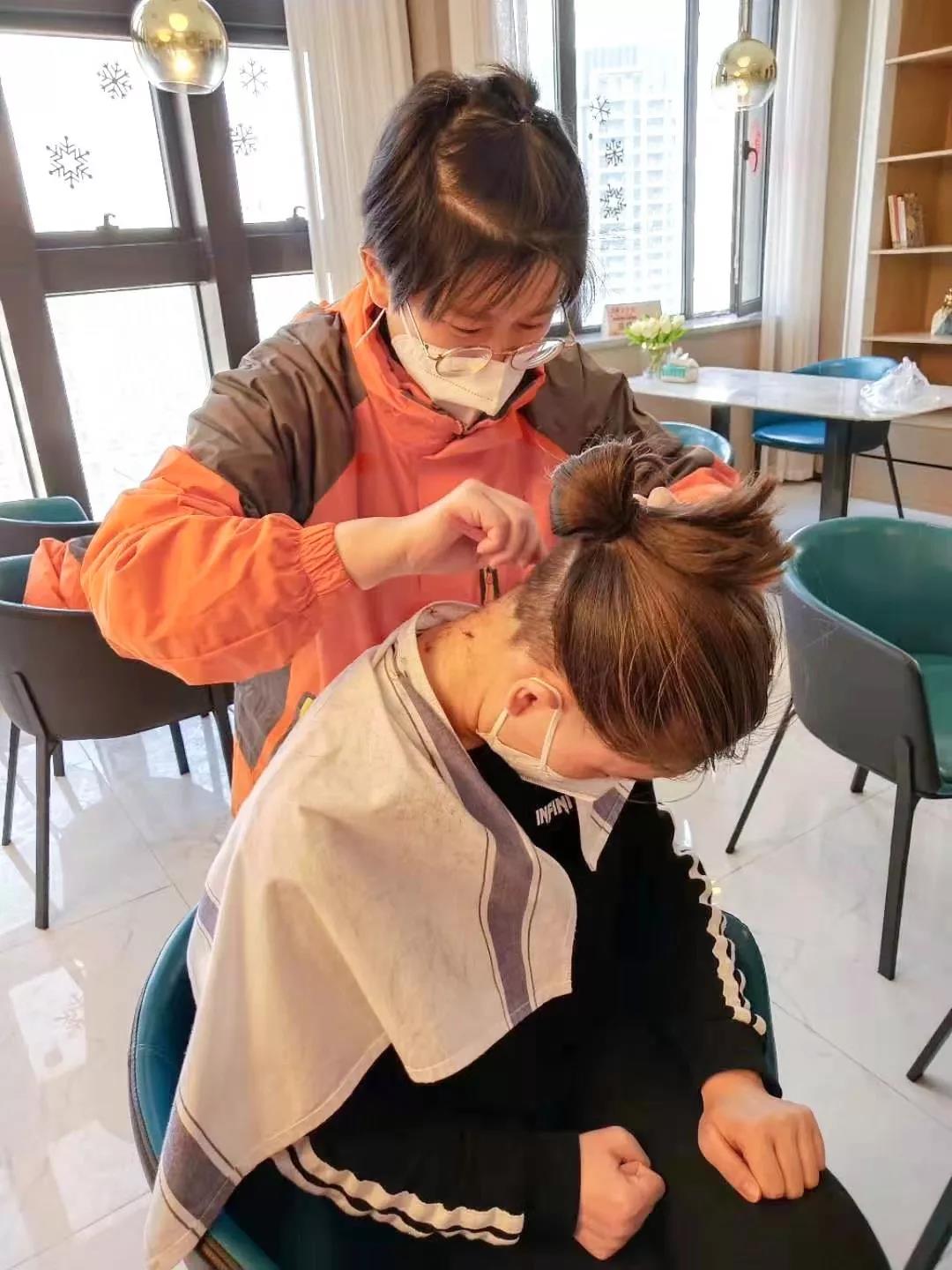 自2月3日醫(yī)療隊抵達武漢,許多熱心企業(yè),包括武漢市政府都在一刻不停地在為大家的后勤保障奔波。但由于疫情防控的原因,理發(fā)店都關(guān)門了。經(jīng)過多方協(xié)調(diào),終于聯(lián)系到家住在附近的周詩堯等人。