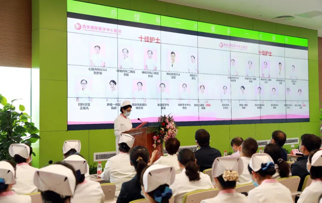 為紀念“5.12”國際護士節(jié),弘揚南丁格爾精神,展示護理團隊良好精神風(fēng)貌和職業(yè)風(fēng)范,5月9日,西安國際醫(yī)學(xué)中心醫(yī)院舉行新護士授帽儀式暨“十佳護士”表彰大會,各科室分會場同時轉(zhuǎn)播。西安國際醫(yī)學(xué)中心醫(yī)院院長尹強、副院長李武平及各??漆t(yī)院、各科室、各職能部門共計千余人參加。大會由護理部主任張敏主持。