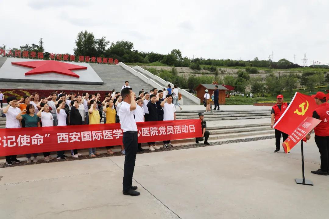 “我志愿加入中國共產(chǎn)黨,擁護(hù)黨的綱領(lǐng),遵守黨的章程,履行黨員義務(wù).......”。 7月1日,西安國際醫(yī)學(xué)中心醫(yī)院由人力資源部李斌主任帶隊(duì),組織全院黨員代表赴銅川照金開展“不忘初心,牢記使命”主題黨日活動(dòng)。