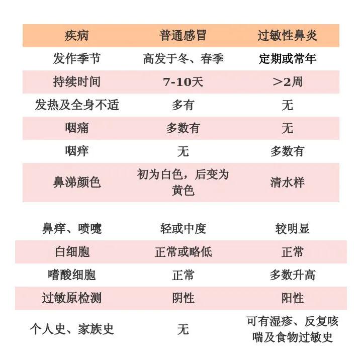 劉志主任介紹,首先是發(fā)病病因不同:普通感冒即急性感染性鼻炎和咽炎,是上呼吸道感染最常見的類型,以病毒感染多見。過敏性鼻炎是機(jī)體接觸變應(yīng)原后由IgE介導(dǎo)的非感染性炎性疾病。