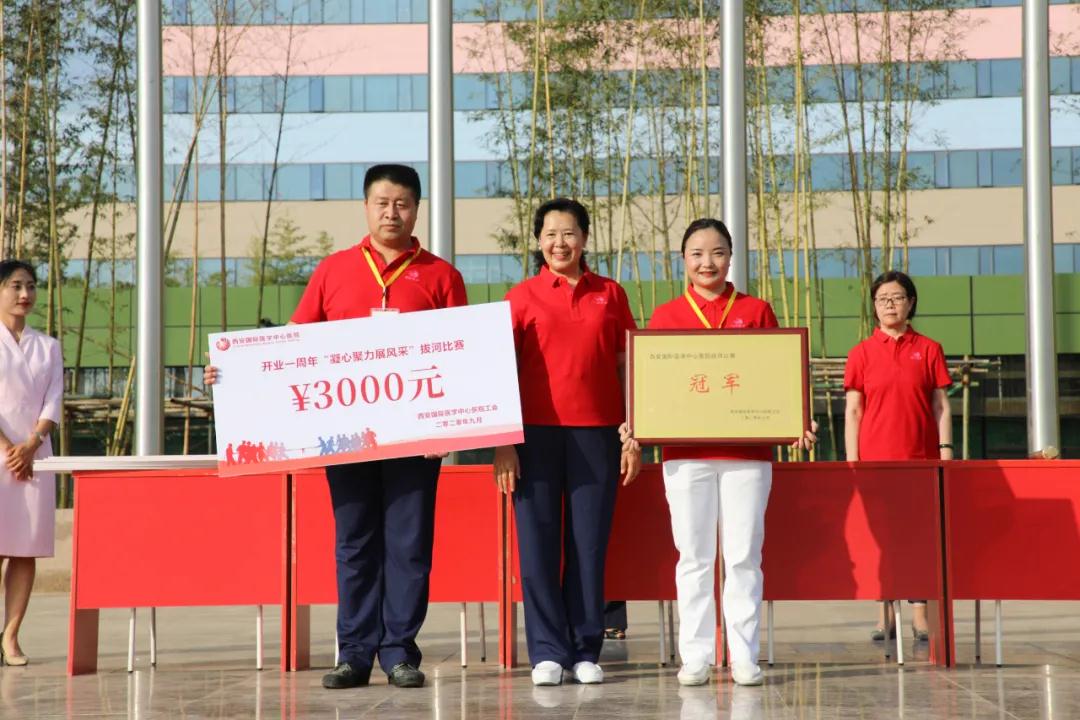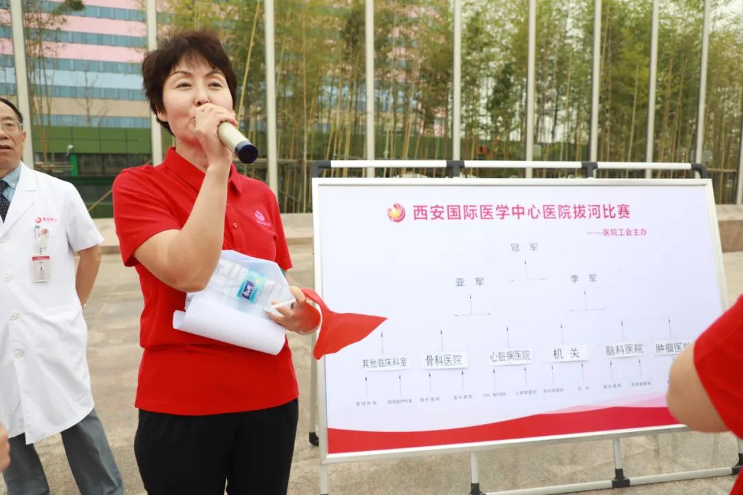 在院慶一周年之際,西安國際醫(yī)學(xué)中心醫(yī)院舉行“凝心聚力展風(fēng)采”拔河比賽,來自各機關(guān)部門、專科醫(yī)院、科室共有11支隊伍275名隊員參加。王志峰總經(jīng)理親臨現(xiàn)場觀摩活動并為參賽隊員加油助威。