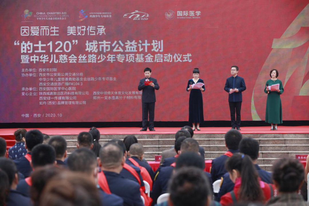 由西安市婦聯(lián)主辦,西安市公安局公共交通分局、中華少年兒童慈善救助基金會(huì)絲路少年專(zhuān)項(xiàng)基金以及西安交通旅游廣播FM104.3協(xié)辦,西安國(guó)際醫(yī)學(xué)中心醫(yī)院承辦“的士120”城市公益計(jì)劃暨中華兒慈會(huì)絲路少年專(zhuān)項(xiàng)基金啟動(dòng)儀式在這里隆重舉行。