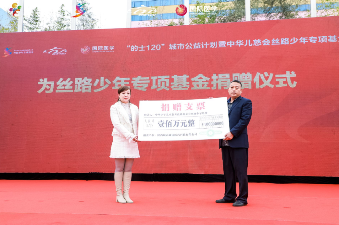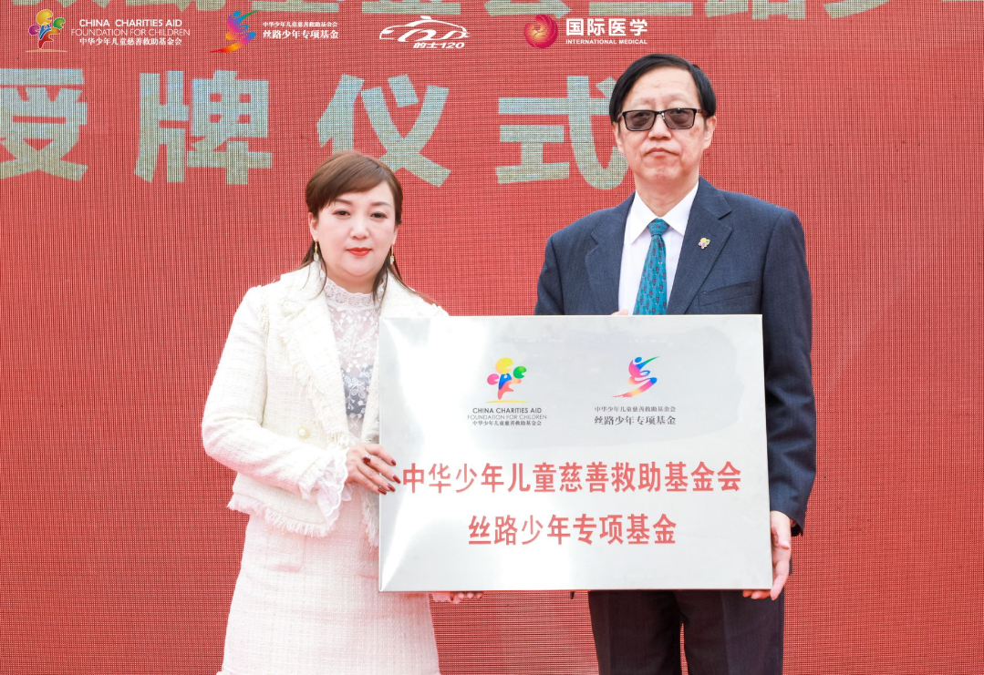 活動(dòng)現(xiàn)場(chǎng),中華少年兒童慈善救助基金會(huì)理事長(zhǎng)兼秘書(shū)長(zhǎng)王林為絲路少年專(zhuān)項(xiàng)基金進(jìn)行了授牌。陜西威高致遠(yuǎn)醫(yī)藥科技有限公司傾情捐贈(zèng)100萬(wàn)元善款,用于為全國(guó)境內(nèi)0-18周歲的腦癱、自閉癥、呼吸疾病、先天性心臟病、先天性小耳畸形等困境患兒提供醫(yī)療服務(wù)。