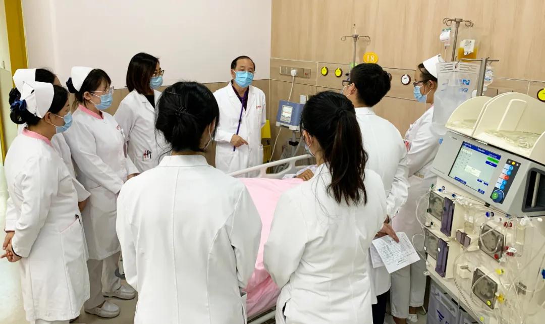 孔先生已經(jīng)出現(xiàn)休克、少尿、消化道出血的癥狀,并伴有胰腺炎。危急時刻容不得半點遲疑,賈戰(zhàn)生主任立即率領(lǐng)李曉主治醫(yī)師、盧敏護(hù)士長、荊虹住院醫(yī)師等醫(yī)護(hù)團(tuán)隊展開72小時救治。制定個性化治療方案,觀察病情并調(diào)整治療,隨時進(jìn)行各項護(hù)理……