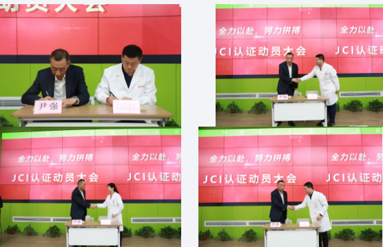 尹強院長與專科醫(yī)院院長、臨床科室、醫(yī)技科室、檢驗中心及機關(guān)職能部門主任、代表,簽署了《評審目標(biāo)責(zé)任書》。消化病醫(yī)院執(zhí)行院長韓國宏、腫瘤一病區(qū)黎冬梅護士長分別發(fā)言,一致表示,一定積極參與、配合、支持相關(guān)工作,為我院順利通過JCI認證工作全力以赴!