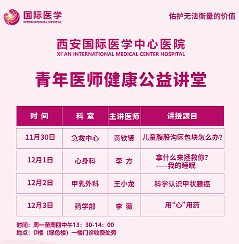 西安國際醫(yī)學中心醫(yī)院—青年醫(yī)師健康公益講堂預告