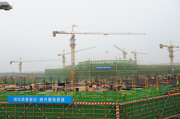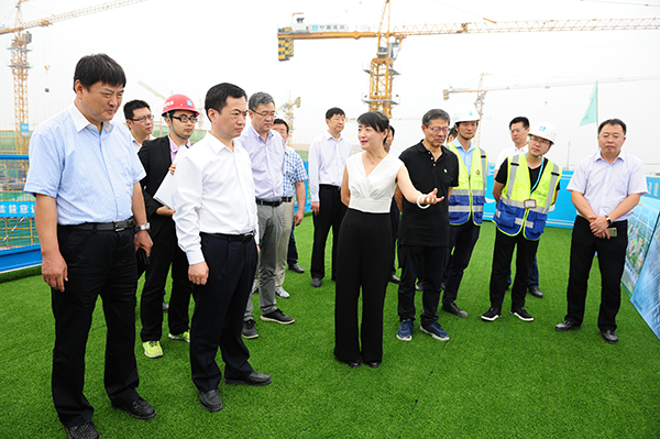 隨后李毅一行在史總帶領(lǐng)下,來到工地現(xiàn)場的二層觀景平臺,面對規(guī)模宏大,塔吊林立的建筑現(xiàn)場,看到項目整體浮出地面,中心醫(yī)技樓已建至二層,李書記對項目建設(shè)進度表示驚喜,同時對建設(shè)管理表示肯定。期間,史總結(jié)合施工現(xiàn)場和效果圖為李書記詳細介紹了國際醫(yī)學城的建設(shè)架構(gòu),功能劃分等情況,之后還就規(guī)劃建設(shè)的“一心兩翼 天使之城”健康中國小鎮(zhèn)的設(shè)計理念,“五位一體”功能布局等做了詳細介紹和說明。