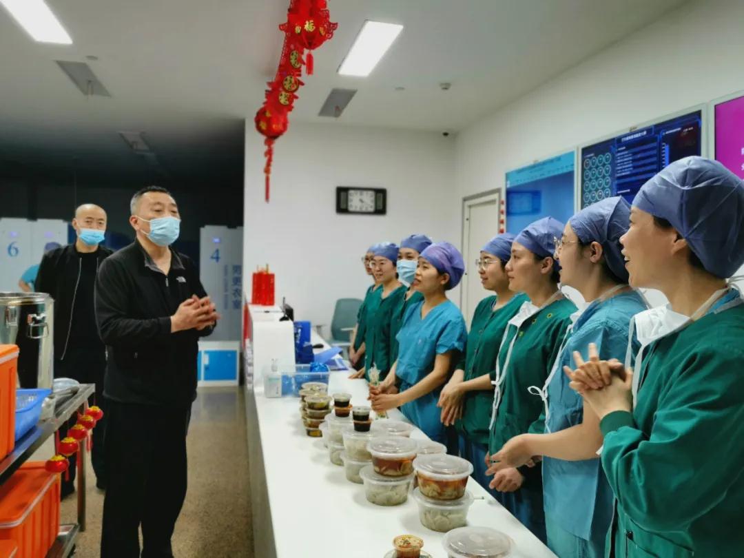 過春節(jié)吃餃子是傳統(tǒng)習俗。除夕夜給住院病人和醫(yī)護人員送餃子是西安國際醫(yī)學中心醫(yī)院的傳統(tǒng)。除夕夜,院長尹強及膳食部工作人員為堅守工作崗位的600余名醫(yī)護及值班人員送去節(jié)日的暖心餃子,并為住院患者及家屬送去1100余張除夕、初一餃子券。