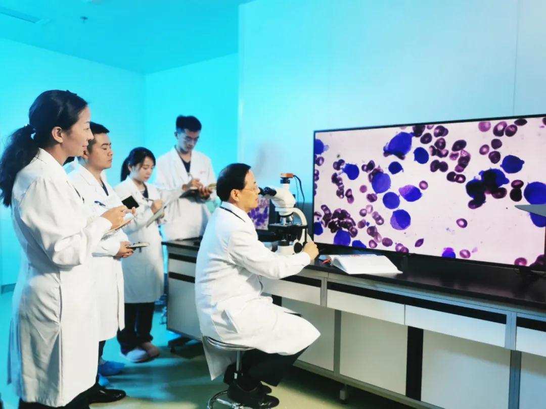 方向比努力更重要。梁英民決定從患者的基本資料入手,迅速捕捉到了“地質(zhì)勘探員、野外工作經(jīng)歷、沒有做過寄生蟲檢測”的關(guān)鍵詞。順藤摸瓜,再次做骨髓檢測,可能會有突破。極力勸說患者后,梁英民拿到了骨髓樣本,隨即前往實(shí)驗(yàn)室,大腦高速運(yùn)轉(zhuǎn)的狀態(tài)讓他無比興奮,目不轉(zhuǎn)睛生怕漏掉任何一個(gè)細(xì)節(jié),終于,他在巨噬細(xì)胞里揪出了“嫌疑犯”——利杜氏體即黑熱病的原兇!要推翻之前的結(jié)論不是件易事,梁英民徹夜未眠,尋找更多有力的證據(jù)。最終,對癥治療后,患者痊愈出院。也是從那時(shí)起,梁英民堅(jiān)持為每一位患者閱片,即使在成為科主任后,梁英民仍保持親力親為用顯微鏡查看疑難患者的血液細(xì)胞形態(tài)的習(xí)慣,這也形成了每周兩天血液病科室醫(yī)生與實(shí)驗(yàn)室技術(shù)員共同學(xué)習(xí)交流的傳統(tǒng)。