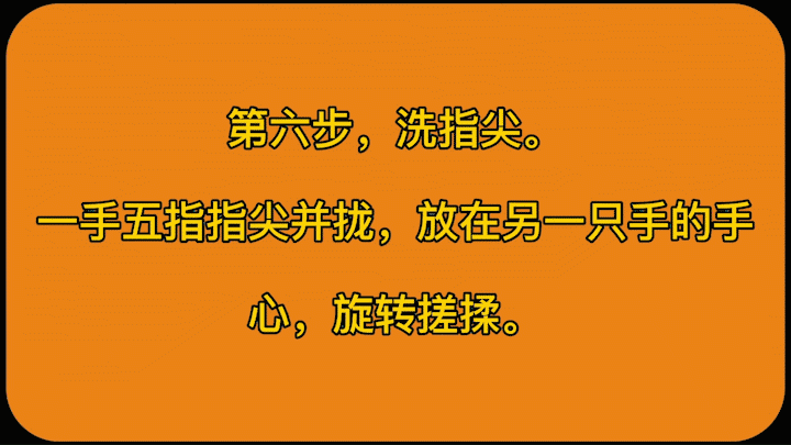 3、認(rèn)真揉搓雙手至少 15s,注意清洗雙手所有皮膚,包括指背、指尖和指縫,具體揉搓步驟(即七步洗手法步驟):