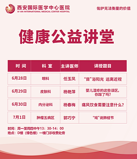 西安國際醫(yī)學(xué)中心醫(yī)院—青年醫(yī)師健康公益講堂預(yù)告