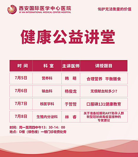 西安國際醫(yī)學(xué)中心醫(yī)院—青年醫(yī)師健康公益講堂預(yù)告