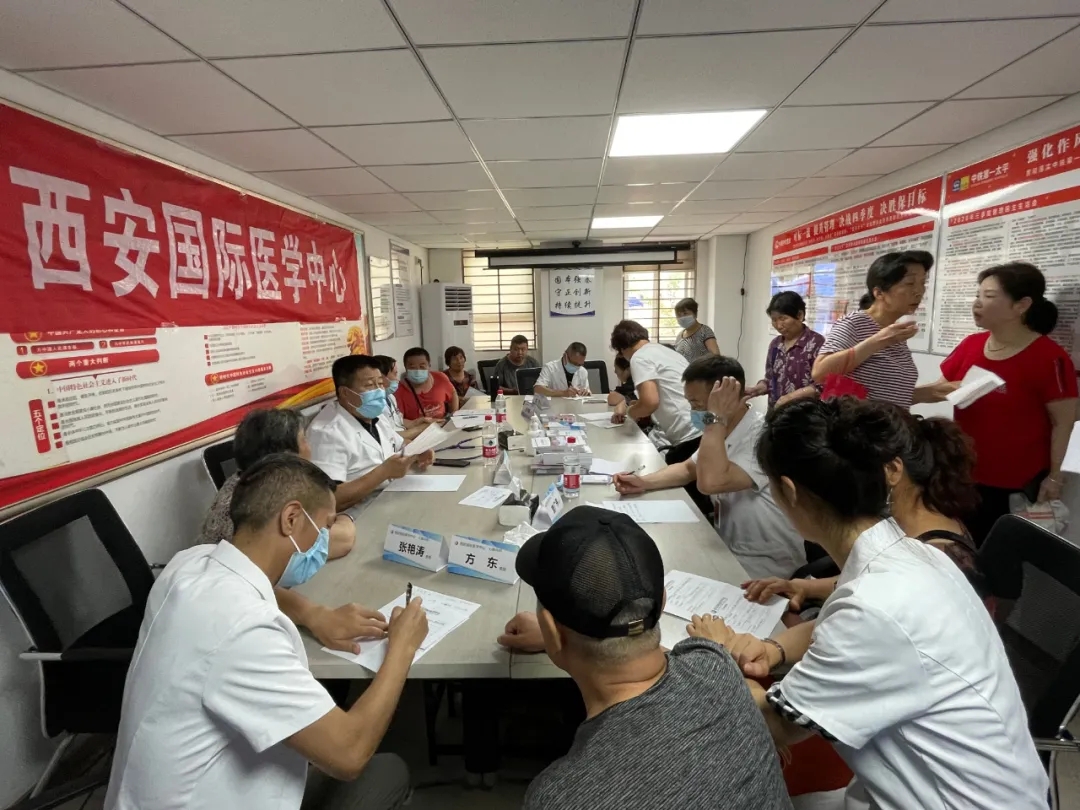 7月4日,由西安國際醫(yī)學(xué)中心醫(yī)院心臟病醫(yī)院心內(nèi)科二病區(qū)發(fā)起的“不忘初心使命 服務(wù)百姓健康”義診活動(dòng)在中鐵繽紛新城社舉行區(qū)。義診團(tuán)隊(duì)來自心內(nèi)科二病區(qū)主任曾廣偉、腎臟內(nèi)科主任李占亭、內(nèi)分泌科副主任任麗君、消化外科一病區(qū)王學(xué)智主任,骨關(guān)節(jié)科兀飛主治醫(yī)師、超聲診療中心宋雯清醫(yī)師等科室的專家,為廣大群眾免費(fèi)提供:心臟彩超、心電圖、測(cè)量血壓、血糖、指脈氧等檢查項(xiàng)目,做到早發(fā)現(xiàn)、早治療。