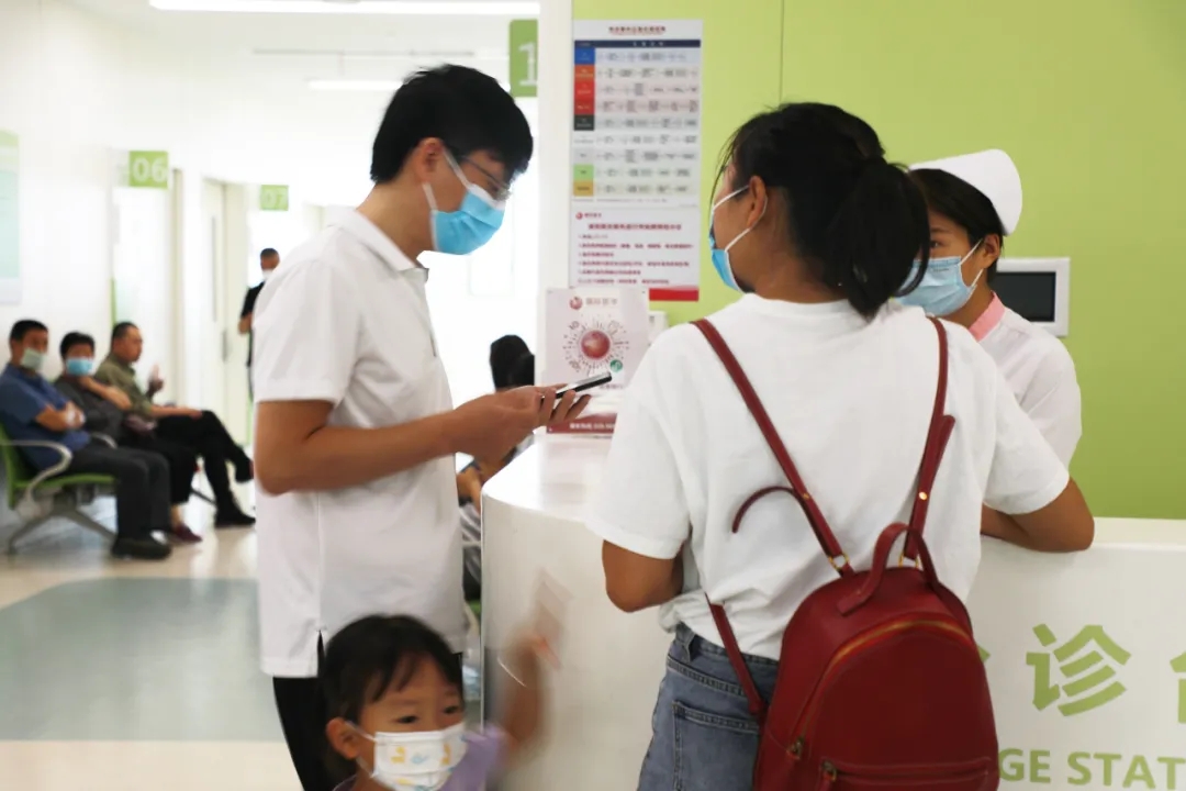 在醫(yī)院各個(gè)診區(qū)的咨詢處、分診臺(tái)前,醫(yī)護(hù)人員也為患者們講解活動(dòng)流程,耐心地為年齡較大不會(huì)使用手機(jī)的患者,預(yù)約掛號(hào)。