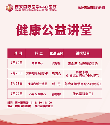 西安國際醫(yī)學中心醫(yī)院—青年醫(yī)師健康公益講堂預(yù)告