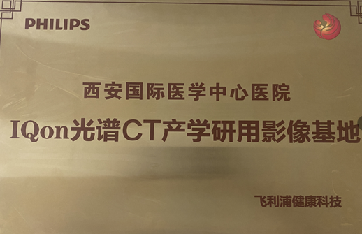 基于前期飛利浦公司與西安國際醫(yī)學中心醫(yī)院的良好合作,為了進一步推動光譜CT的臨床應用、科研及轉化,飛利浦大中華區(qū)非公醫(yī)療吳訪宏總經理代表飛利浦公司授予西安國際醫(yī)學中心醫(yī)院“IQon光譜CT產學研用影像基地”。