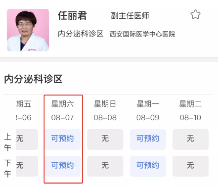 進入預約掛號后,點擊選擇其他門診—內分泌科診區(qū)—任麗君—選擇預約時間—填寫流行病學史調查表,完成預約。