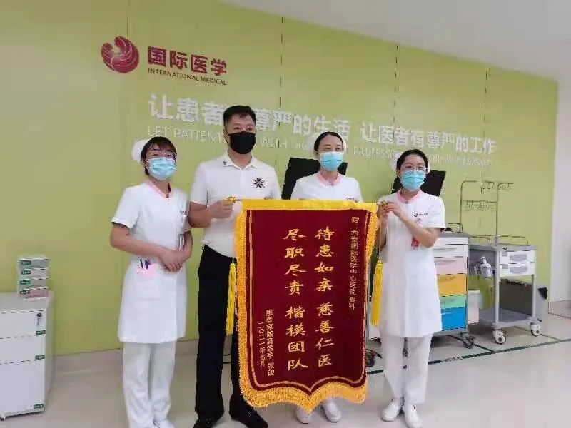 出院之際,小高和父母將蛋糕與錦旗送到倪偉主任手中,“這次手術很成功,孩子恢復得很好。我們第一次來這里就診,倪主任、蘇醫(yī)生和護長都非常負責,特別感謝倪主任!”