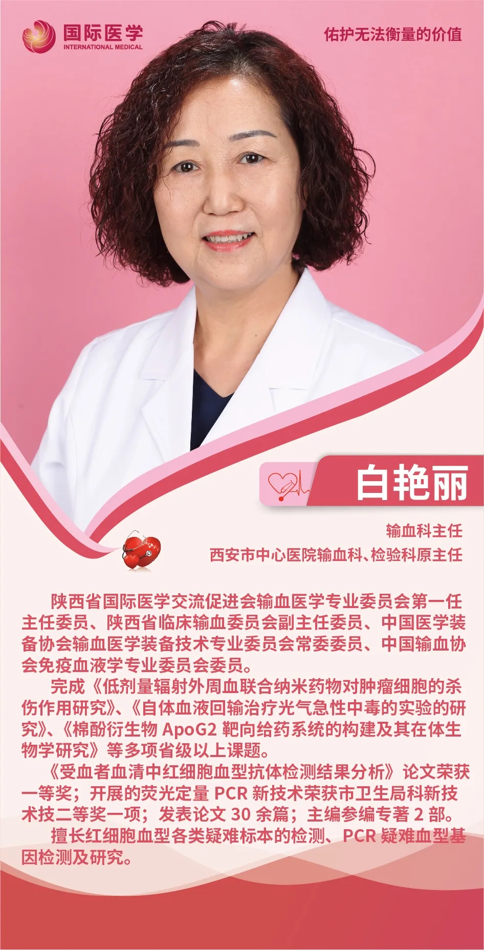 她就是西安國際醫(yī)學(xué)中心醫(yī)院輸血科主任——白艷麗。