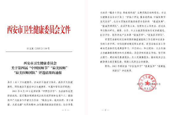 在中國(guó)醫(yī)師節(jié)到來之際,西安市衛(wèi)健委、高新區(qū)文旅健康局表彰了一批先進(jìn)醫(yī)療機(jī)構(gòu)、優(yōu)秀醫(yī)務(wù)工作者,西安國(guó)際醫(yī)學(xué)中心醫(yī)院3個(gè)科室、6名醫(yī)生獲得表彰。