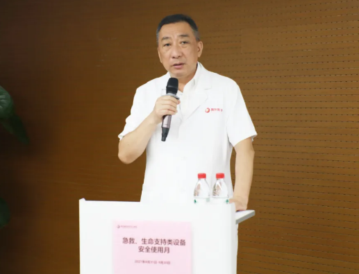 為進(jìn)一步規(guī)范醫(yī)護(hù)人員安全使用急救、生命支持類設(shè)備,提升醫(yī)護(hù)人員綜合實(shí)力,8月31日,西安國際醫(yī)學(xué)中心醫(yī)院舉行以“加強(qiáng)安全意識、規(guī)范操作流程、保障服務(wù)質(zhì)量”為主題的首屆“急救、生命支持類設(shè)備安全使用月”啟動(dòng)儀式。尹強(qiáng)院長、劉延彤院長助理、護(hù)理部張敏主任、培訓(xùn)中心康福霞主任、重癥醫(yī)學(xué)科袁清霞主任以及相關(guān)科室人員共計(jì)90余人參加。儀式由醫(yī)學(xué)工程部主任趙海濤主持。