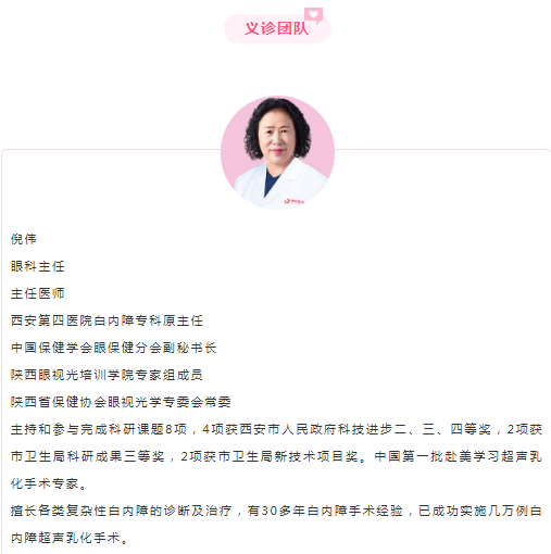 為解答患者疑問、方便患者就醫(yī),西安國際醫(yī)學中心醫(yī)院舉行關愛近視眼健康大型義診活動,眼科主任倪偉、楊磊副主任醫(yī)師、任玉鳳等專家聯合出診,為廣大群總進行免費義診,提高大家對視覺質量重要性的認識,了解高度近視的基礎知識,并讓高度近視患者得到及時和正確的診斷及精準治療。