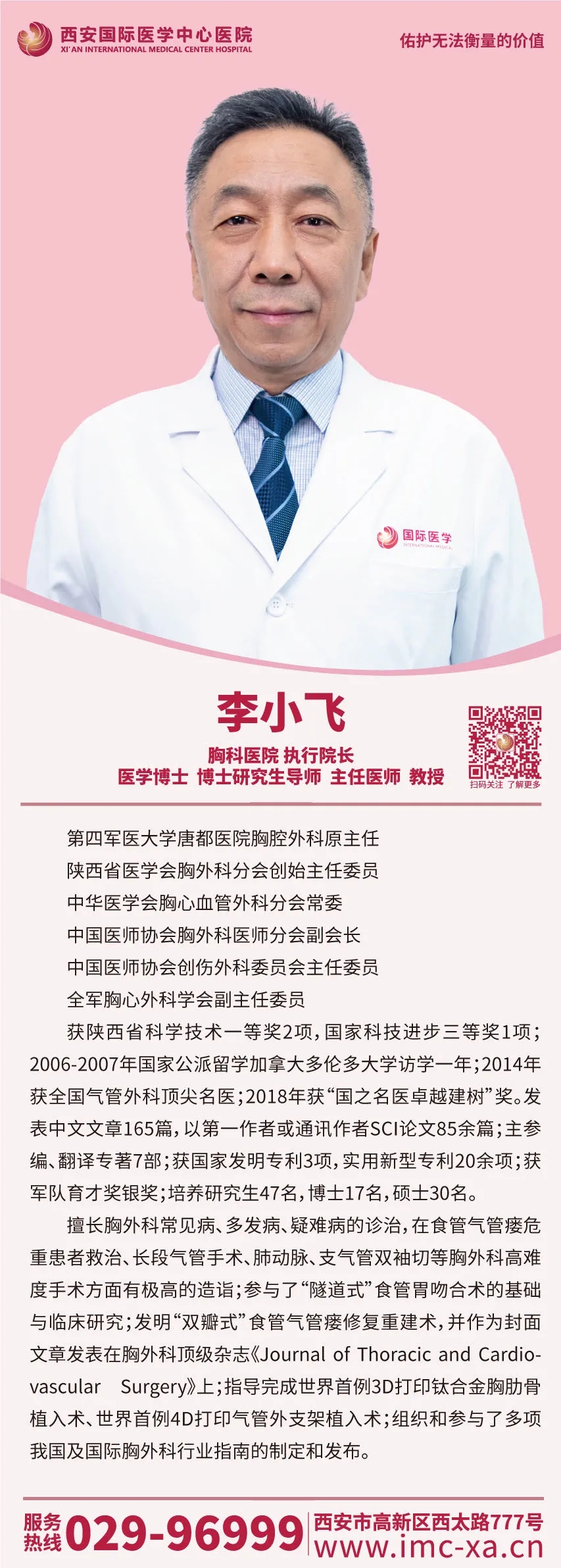 10月21日,著名胸科專家、第四軍醫(yī)大學(xué)唐都醫(yī)院胸腔外科原主任李小飛教授加盟西安國際醫(yī)學(xué)中心醫(yī)院,任胸科醫(yī)院執(zhí)行院長,為醫(yī)院發(fā)展注入強(qiáng)勁動力,促進(jìn)醫(yī)院專業(yè)學(xué)科水平躍上新臺階。