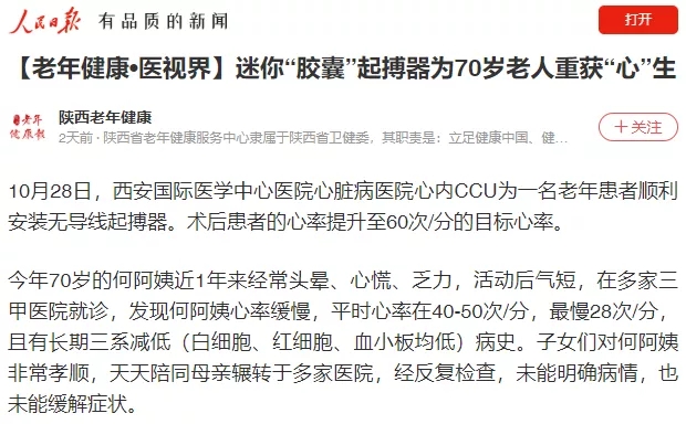【老年健康?醫(yī)視界】迷你“膠囊”起搏器為70歲老人重獲“心”生