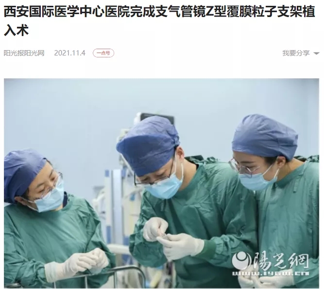 西安國(guó)際醫(yī)學(xué)中心醫(yī)院完成支氣管鏡Z型覆膜粒子支架植入術(shù)