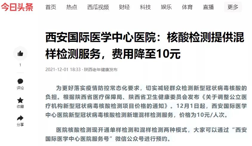 西安國際醫(yī)學(xué)中心醫(yī)院:核酸檢測(cè)提供混樣檢測(cè)服務(wù),費(fèi)用降至10元