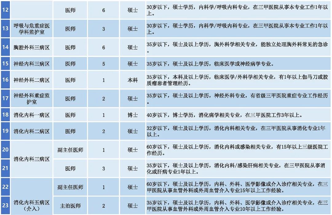 應(yīng)聘者要有相應(yīng)的執(zhí)業(yè)證書(shū)和資格證書(shū);應(yīng)聘醫(yī)師崗位者要完成國(guó)家住院醫(yī)師規(guī)范化培訓(xùn)。