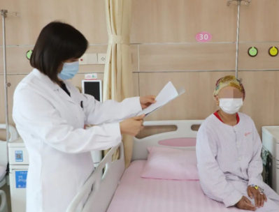 入院后,經(jīng)過全面檢查,薛妍評估病情,制定了周密的診療方案。經(jīng)過胸腔熱灌注化療、系統(tǒng)性化療 靶向治療,劉女士的胸悶氣短等癥狀很快緩解,并且乳房皮膚的破潰也在一天天好轉(zhuǎn)。6個(gè)周期的靶向治療、化療,雖然漫長,但也讓劉女士漸漸看到了希望。