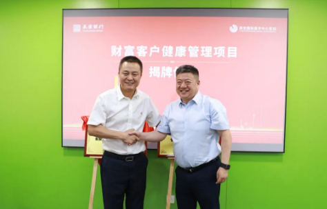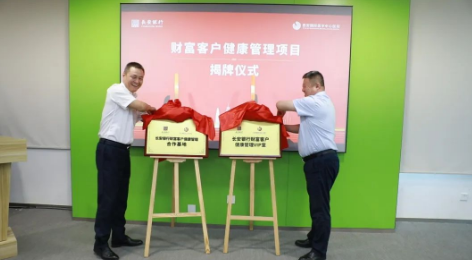劉瑞軒總裁與王作全行長(zhǎng)共同為“長(zhǎng)安銀行財(cái)富客戶(hù)健康管理合作基地”“長(zhǎng)安銀行財(cái)富客戶(hù)健康管理VIP室”揭牌。