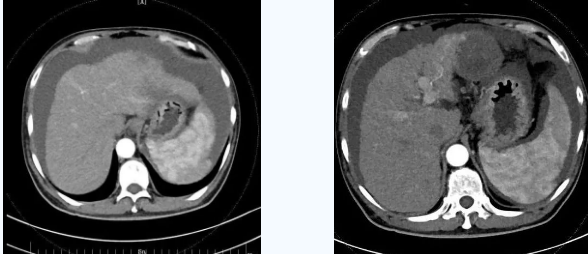 術(shù)后一個(gè)月秦先生來院復(fù)查,腹水已明顯較前減少,精神和飲食較術(shù)前明顯好轉(zhuǎn)。