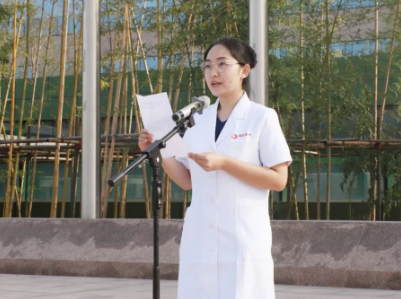 新員工苑會(huì)羚代表發(fā)言。她表示作為新員工,興奮和感激之余,更重要的是多了一份責(zé)任和擔(dān)當(dāng),我們會(huì)在今后的工作中盡快熟悉并嚴(yán)格遵守醫(yī)院的各項(xiàng)規(guī)章制度和操作流程,向各位老師、前輩虛心請(qǐng)教,抓住每一次提高自身能力素質(zhì)的機(jī)會(huì),盡快掌握各項(xiàng)基本技能,實(shí)現(xiàn)由學(xué)歷向能力的轉(zhuǎn)變