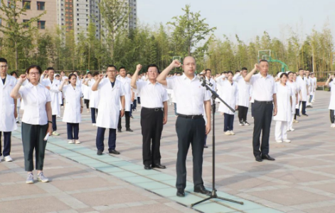 最后,付強(qiáng)副院長(zhǎng)帶領(lǐng)全體新員工舉起右手,莊嚴(yán)宣誓:“我們是天的使者,以救死扶傷為天職.......”,鏗鏘有力的誓言在萬(wàn)人廣場(chǎng)久久回蕩。