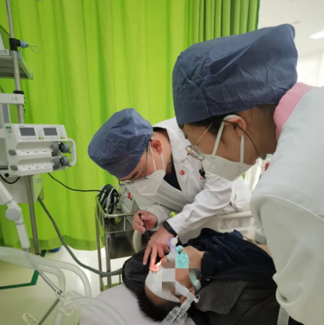 此時(shí),急救中心的平車已達(dá)現(xiàn)場。監(jiān)測不出患者的血壓、心率,“常亮醫(yī)生和程雪護(hù)士配合,持續(xù)實(shí)施心肺復(fù)蘇,同時(shí)予以氣管插管、呼吸機(jī)輔助呼吸!”急救中心主任余厚友坐鎮(zhèn),全力搶救反復(fù)出現(xiàn)室顫的患者,患者的心跳恢復(fù)后,復(fù)查心電圖異常,心臟內(nèi)科CCU康曉軍副主任醫(yī)師急會(huì)診考慮是心源性心臟驟停。