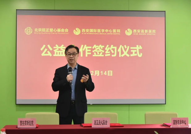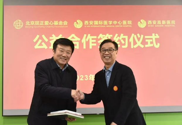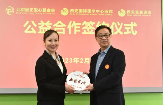 2月14日上午,西安國際醫(yī)學(xué)中心醫(yī)院、西安高新醫(yī)院與北京屈正愛心基金會公益合作簽約儀式在西安國際醫(yī)學(xué)中心醫(yī)院保障樓舉行,北京屈正愛心基金會創(chuàng)始人屈正、理事魏曉輝,國際醫(yī)學(xué)副總裁孫文國,西安國際醫(yī)學(xué)中心醫(yī)院院長尹強(qiáng),西安高新醫(yī)院總經(jīng)理范郁會、院長宋瑛及醫(yī)院相關(guān)部室、專科醫(yī)院負(fù)責(zé)人等出席活動,西安國際醫(yī)學(xué)中心醫(yī)院副院長付強(qiáng)主持儀式。