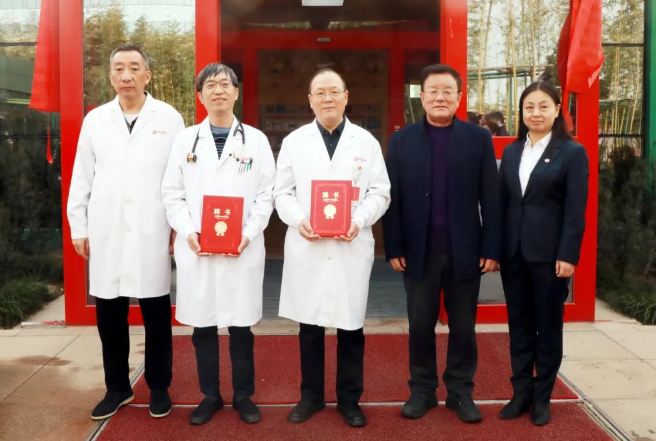 王志峰總經(jīng)理為特需門診的專家代表----胸科醫(yī)院朱運(yùn)奎副院長和內(nèi)分泌代謝病醫(yī)院姬秋和院長頒發(fā)聘書。