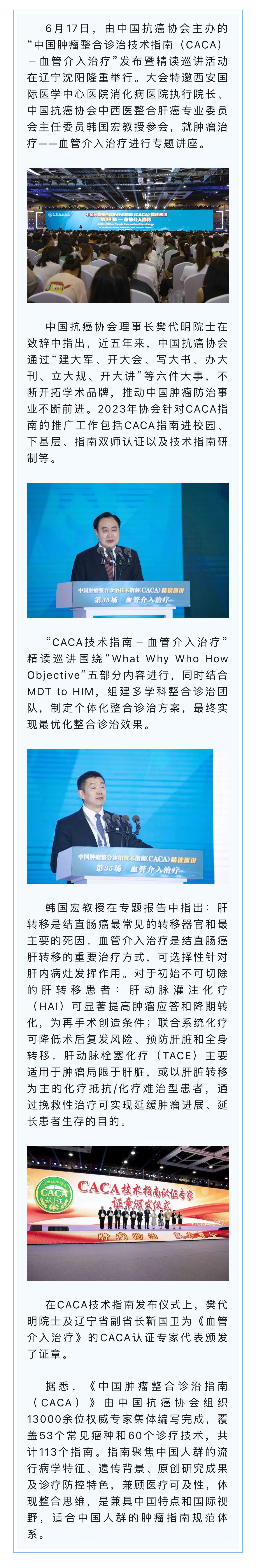 韓國(guó)宏教授受邀參加“中國(guó)腫瘤整合診治技術(shù)指南(CACA)-血管介入治療”發(fā)布暨精讀巡講活動(dòng)