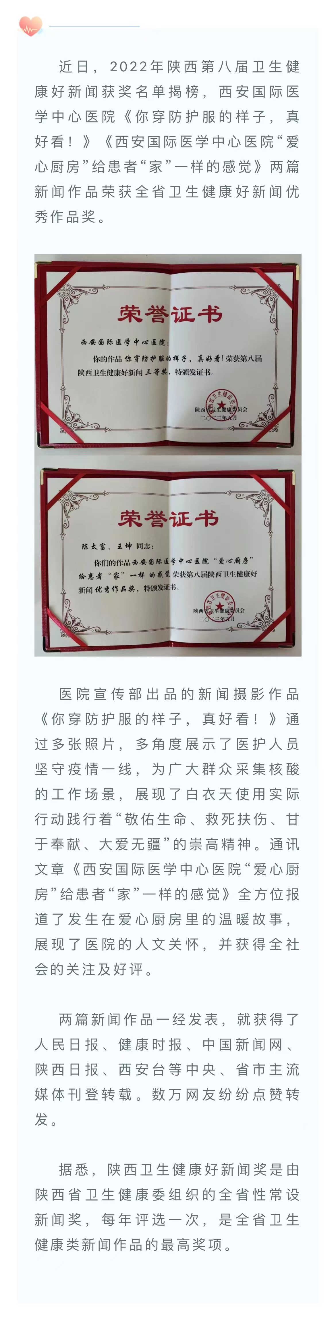 我院兩篇新聞作品榮獲陜西省衛(wèi)生健康好新聞優(yōu)秀作品獎