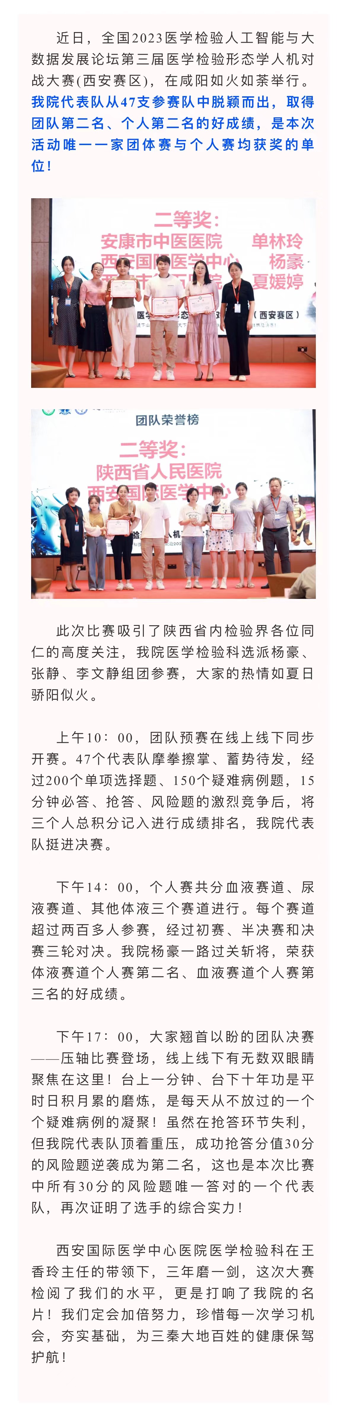 唯一!團(tuán)隊(duì)、個(gè)人均獲全國(guó)第三屆醫(yī)學(xué)檢驗(yàn)形態(tài)學(xué)人機(jī)對(duì)戰(zhàn)大賽(西安賽區(qū))第二名