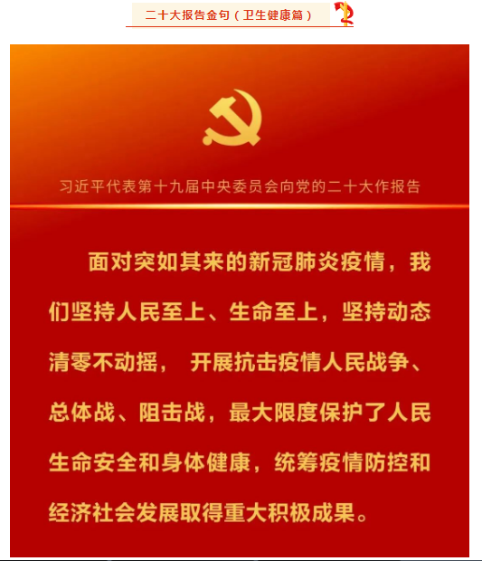 十載成就鼓舞人心,宏偉藍(lán)圖催人奮進(jìn)。西安國(guó)際醫(yī)學(xué)中心醫(yī)院黨委將把學(xué)習(xí)宣傳貫徹黨的二十大精神作為頭等大事,把思想和行動(dòng)迅速統(tǒng)一到黨的二十大精神上來,深刻領(lǐng)會(huì)二十大報(bào)告中提出的新思想、新觀點(diǎn)、新目標(biāo)、新舉措,在新征程上,西安國(guó)際醫(yī)學(xué)中心醫(yī)院全體黨員、群眾將把學(xué)習(xí)宣傳貫徹黨的二十大精神與學(xué)習(xí)貫徹習(xí)近平總書記來陜考察重要講話重要指示精神和對(duì)衛(wèi)生健康工作的一系列重要指示批示精神相結(jié)合,踔厲奮發(fā)、勇毅前行、團(tuán)結(jié)奮斗,為推進(jìn)醫(yī)院高質(zhì)量發(fā)展和健康中國(guó)建設(shè)貢獻(xiàn)智慧和力量!