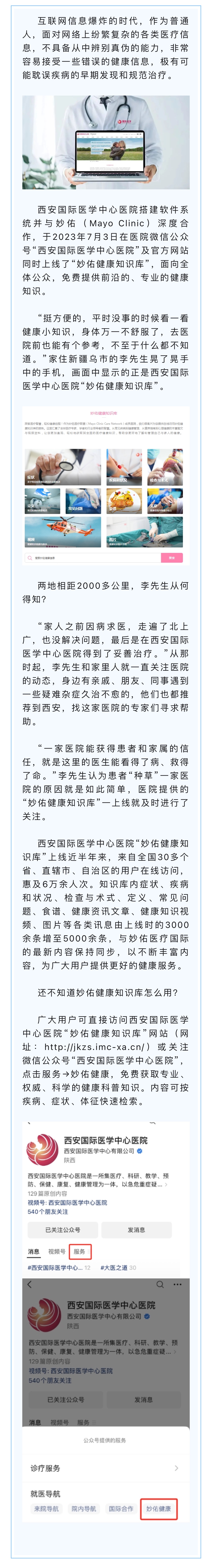 24小時掌中健康管家——西安國際醫(yī)學中心醫(yī)院“妙佑健康知識庫”