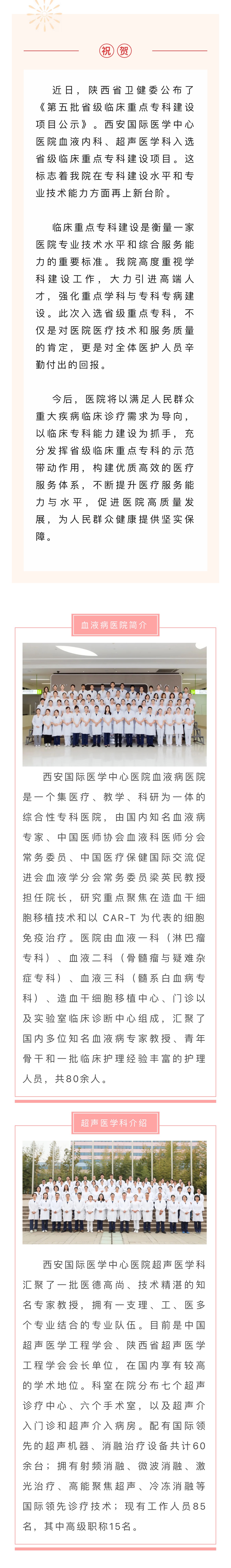 我院血液內(nèi)科、超聲醫(yī)學(xué)科入選省級(jí)臨床重點(diǎn)專(zhuān)科建設(shè)項(xiàng)目