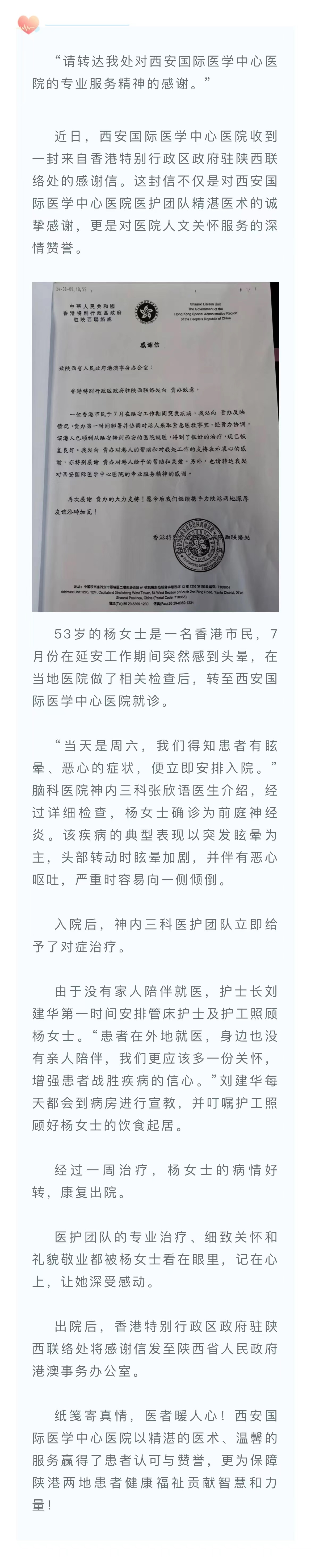 溫情!一封見(jiàn)證陜港深厚情誼的感謝信
