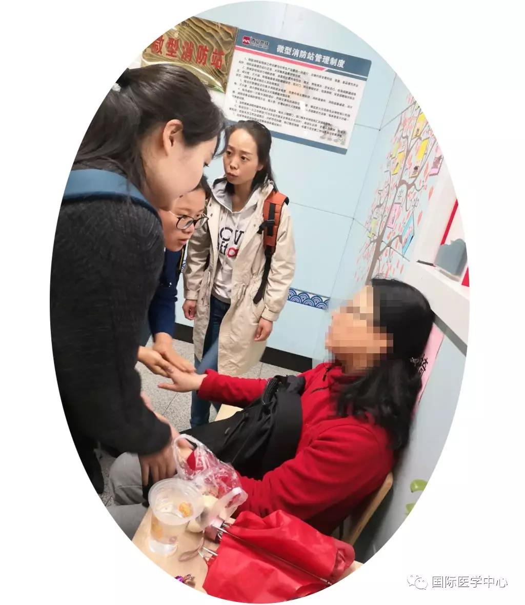 救助點(diǎn)上,一位女士正癱坐在椅子上。經(jīng)初步檢查,該女士面色蒼白、全身發(fā)麻、心慌胸悶、雙手冰涼、心率達(dá)90次/分。經(jīng)詢問得知,患者一個(gè)月前診斷患有冠心病。西安國(guó)際醫(yī)學(xué)中心神經(jīng)疾病醫(yī)院護(hù)士長(zhǎng)徐妍、胸科醫(yī)院門診護(hù)士長(zhǎng)馬苗苗陪伴在患者身旁,遞上水和糖塊,喂給患者,不停地為她揉搓雙手促進(jìn)血液循環(huán),并借來外套保暖,反復(fù)安慰。在大家的安撫下,患者情緒逐漸平穩(wěn)下來。隨后,她倆又與地鐵工作人員聯(lián)系了患者家屬與醫(yī)院。